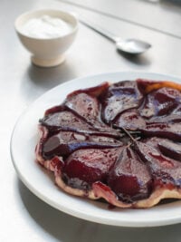 If youโd like, after poaching the pears, you can reduce the liquid until it becomes a thick syrup and pour it over the pears before serving. To do that, remove the pears with a slotted spoon and strain out any spices or seasonings, then cook the liquid over medium-high heat until itโs reduced by about half. If Iโm serving the pears by themselves, or alongside a cake, Iโll do that to make a richer, thicker, more flavorful sauce.