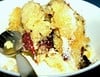 Nowadays the hazelnuts are hand-crushed with rolling pins to assure theyโre still in irregular chunks before dipping.