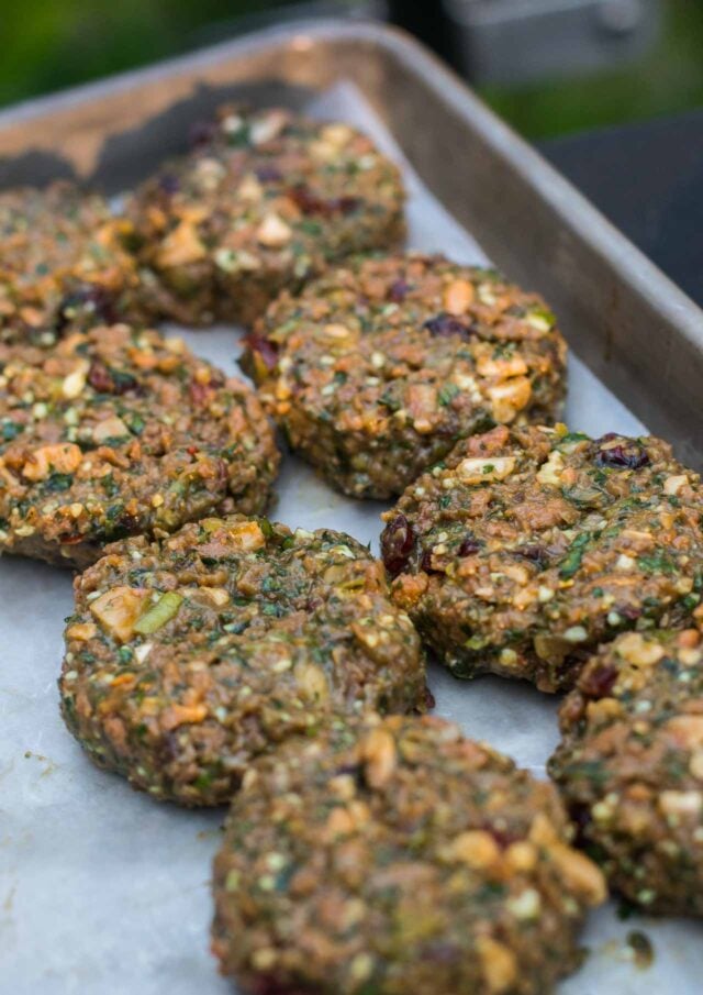 They were admittedly, delicious. I toggled the spices up a bit, swapped out cashews for the harder-to-find pine nuts, and found the meat alternative wetter than expected, so you might only need one egg. Romain was delighted** with them, which is always a good thing, and to be honest, so was I.