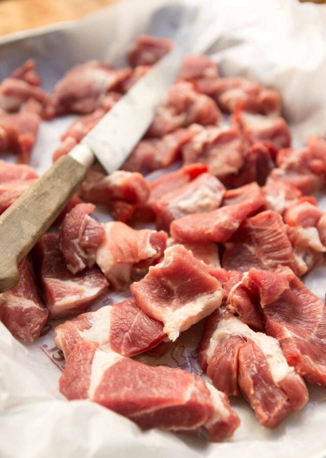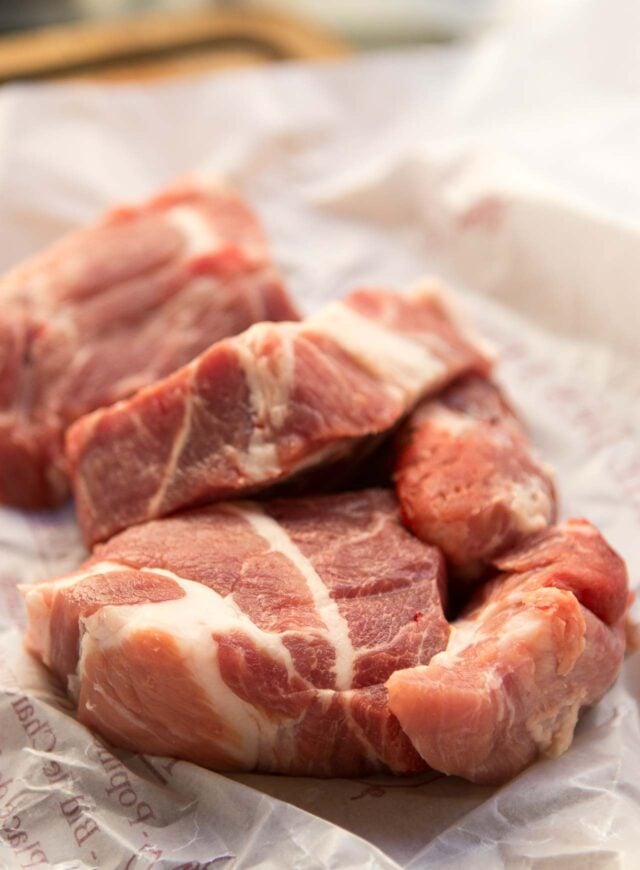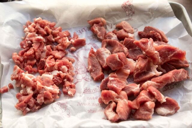 - 1 pound (450g) boneless pork shoulder, cut into 1/2-inch (1.5cm) pieces, or coarsely ground (see headnote)