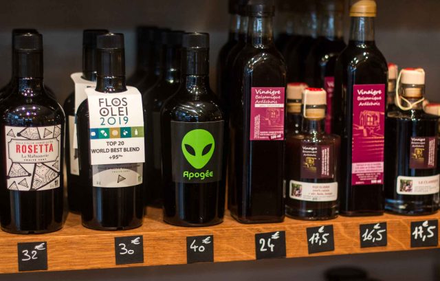 Sticking with the Made in France theme, thereโs a line-up of โbalsamic vinegarsโ from a woman who produces it in the Ardeche. Theyโre not the same as those made in Modena, hence the quotation marks (for those keeping track of those things), but made from the juice of four varieties of grapes.