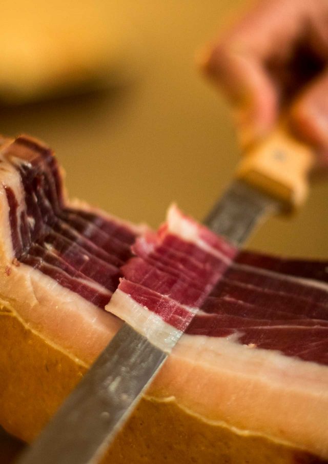 I learned that a few years ago when someone gave me a whole one and I had to practice to get it to the right thicknessโฆor thinness, I should say. Itโs a rare treat and it took a while for my apartment to stop smelling like cured pork, which isnโt necessarily a bad thing. I made it through, but itโs easier to leave it to the pros, like Pierre, and buy it here.