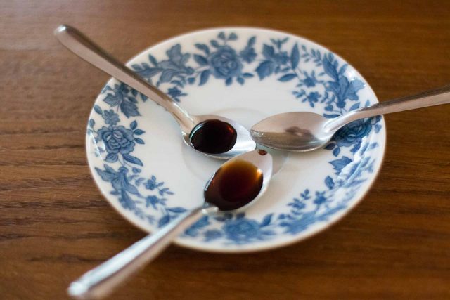 There are various types of balsamic, with different degrees of moรปt (grape must, composed of skins and seeds) added, which determines the thickness and the flavor. We tasted all three.