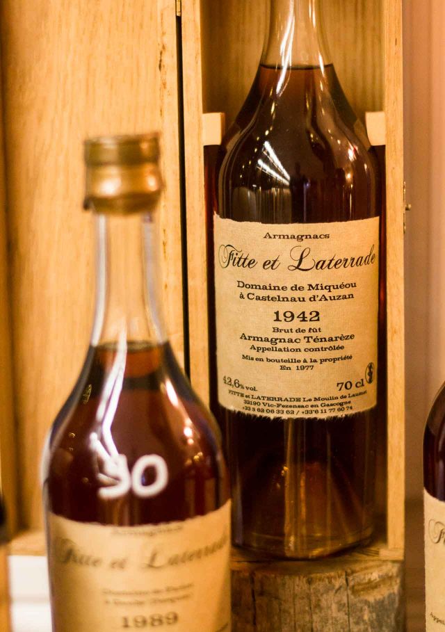 When buying Armagnac, one shouldnโt necessarily be persuaded by age. Itโs the cรฉpage (variety of grape used), and other factors, that determine its quality. That was evident when I smelled the various bottles they had on hand, including one from 1942, which smelled lovely, but not as terrific (to my taste, or nose) as the one from 1975, which was truly spectacular.