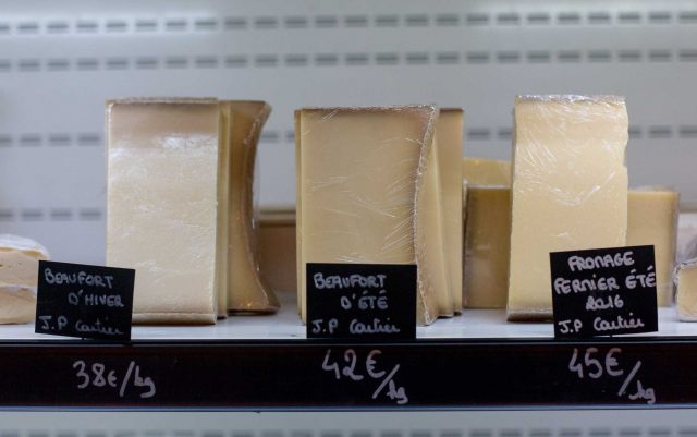 Made from organic milk, each is seasoned with a sprinkle of sel from the Camargue, a region famous for its salt, but also for its pink flamingos. Nearby was a favorite cheese of mine, Beaufort dโรฉtรฉ, made from milk that the cows produce after grazing on summer (รฉtรฉ) grass and flowers high up in the mountains, which gives their milk a particularly delicious flavor.
