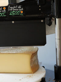 Being France, and being a dairy farm and cheese-making operation, the cheese display is definitely something to behold. Theyโve offerย cheeses that they make, as well as top-notch cheeses from across France. The second picture in this post are fresh cowโs milk cheeses wrapped in paper that are still soft and creamy.