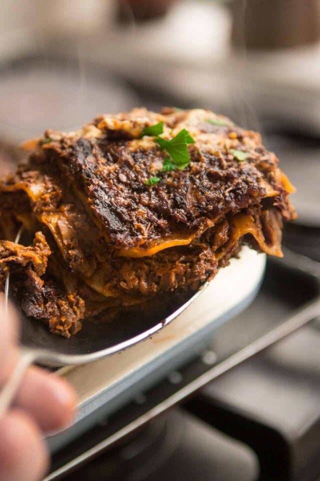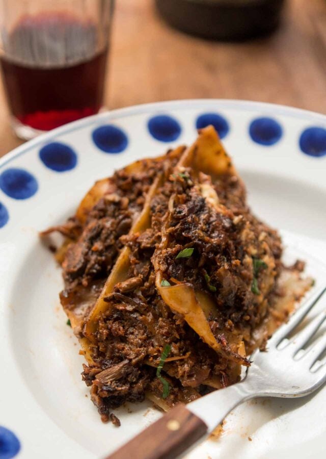 No-boil noodles Iโve learned are the norm here and thatโs what they use in the book. They absorb some of the liquid while baking. I didnโt find this lasagne dry but if your mushroom ragรน is a little more liquidy than mine, I think thatโs a good thing.ย Iโve added additional notes in the recipe and the in headnote but I have to say, Romain absolutely swooned over this, and so did I. It truly lives up to the title of the book and is packed with flavor.