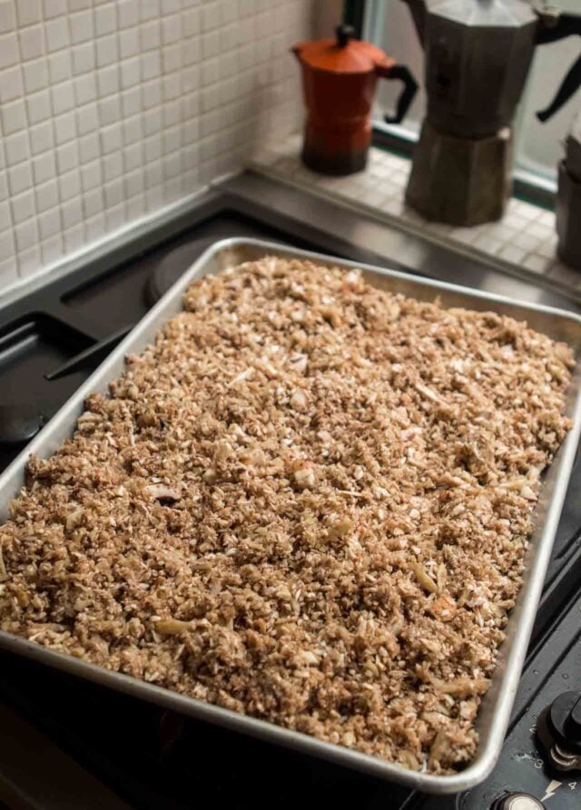 The โget to the recipeโ folks might want to make good use of their thumbs to scroll down to the recipe, but Iโm not going to lie to you. I picked one of the more challenging recipes from the book, although the easier-looking the Iceberg Lettuce Salad with Smoky Eggplant Cream (page 38), Zaโatar Cacio e Pepe (page 104), Broccolini with Mushroom Ketchup and Nori (page 227), and the Tangerine and Ancho Chili Flan (page 278, which I think is nextโฆ) also have my name on them. But first, I needed to tackle this lasagna.