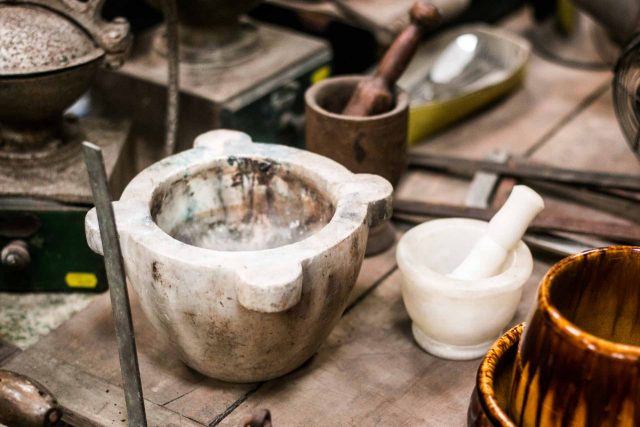 I purchased a mortar and pestle last time I was here, but itโs somehow developed a chip in the lip, just sitting on my counter (hmmmโฆ.) so I am sticking with what Iโve already got โ warts, chips, and all.