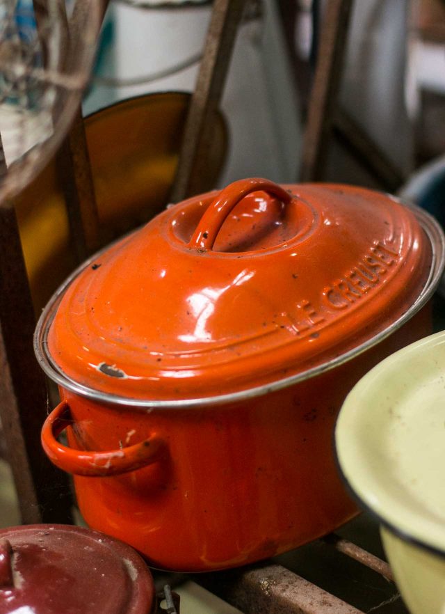 When looking for antiques and cast-offs at flea markets, I tend to focus on kitchen stuff, so imagine my surprise one day when we were driving near Angoulรจme, and I made Romain pull over when I saw a โBrocanteโ sign, something heโs now used to. I think heโs the only Parisian Iโve ever met that will ever back up for anything. And for that, Iโm thankful, because it happens with great frequency when weโre on road trips.