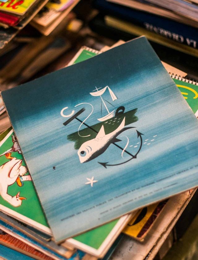 Some things have seen better days (as have I), so you need to sort through stuff, which I donโt mind. But unlike other stores, Yannick has organized things by โtype,โ so youโll find terrines lined up in one place, crockery in another, enamelware grouped together, and books and records stacked in separate bookshelves.