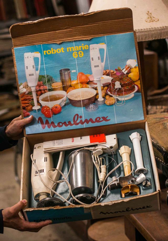 A favorite shop is La Brocalou le Titoustock, although to call two giant hangers packed with stuff a โshopโ is kind of a stretch. Shopping there is more like a tournament, and you never know how, or what, you might score.