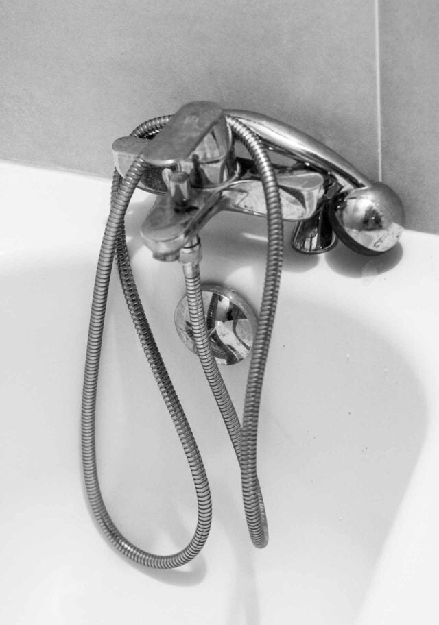 In France, a number of pommeaux de douche (not to be confused with just pommeau, a delicious apple-based French apรฉritif), are not firmly fixed to the wall, as they are in the States. But are at the end of spiraled hoses, no matter where you lay them while youโre showing,ย are showerheads that will slither downward and go rogue in the tub or shower basin. And if you havenโt turned it off, you and possibly the bathroom, are gonna get hosed.