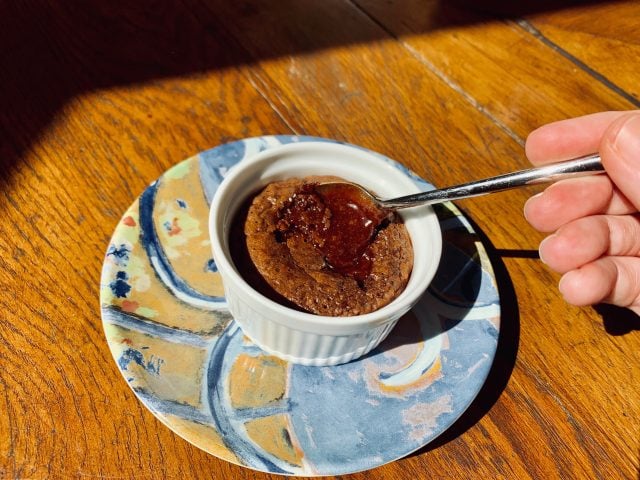 Setting the table nicely helps us to switch from โwork dayโ to evening and if you donโt use the good china during a pandemic, when will you? The supermarkets are well stocked (we go once a week for food, taking all precautions) and I alternate between making elaborate meals such as Coq au vin or slow roasted lamb to pass the time, and wonderfully simple things such as basic omelettes or delicious and comforting roast chicken. Dessert has taken on a new meaning, although we cut some recipes in half so we can try out a new one each day. Sticky toffee pudding, Fondant chocolate (warm melting chocolate cake), and fruit crumbles and crisps have all been winners. Our son has no idea about the situation and continues to gobble his purรฉed (mushed) vegetables, yoghurt, fruit and milk. He is becoming more adventurous and wants to taste everything we have, now that he has a few new teeth.