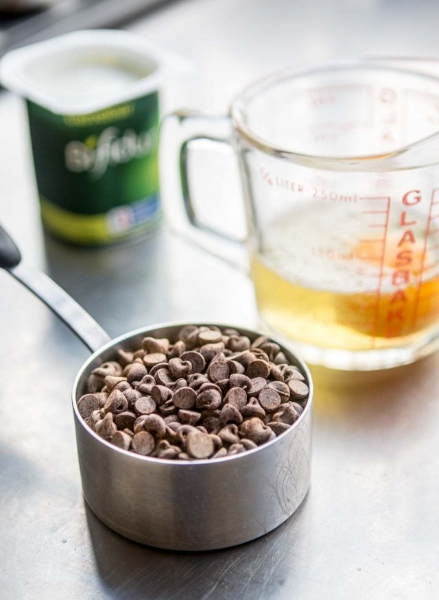- 1/2-3/4 cup (80-120g) chocolate chips