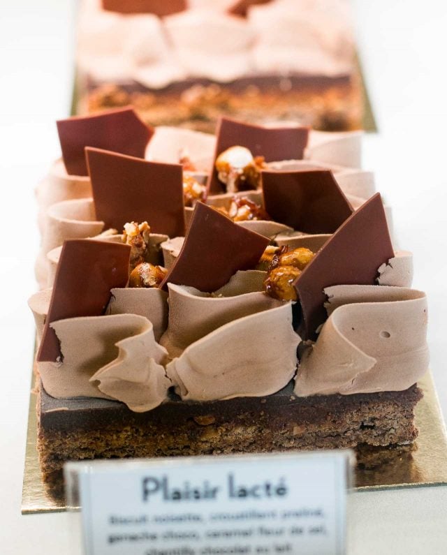For those that want to stick to the savory side, some of their bakeries have casual, in-store cafรฉs where you can stop in for not only breakfast pastries and un petit cafรฉ, but a hefty slab of quiche, whose flavors change by the season, or fougasse topped smoked salmon, olives, mozzarella, or the only-in-France combo of bacon and cream.