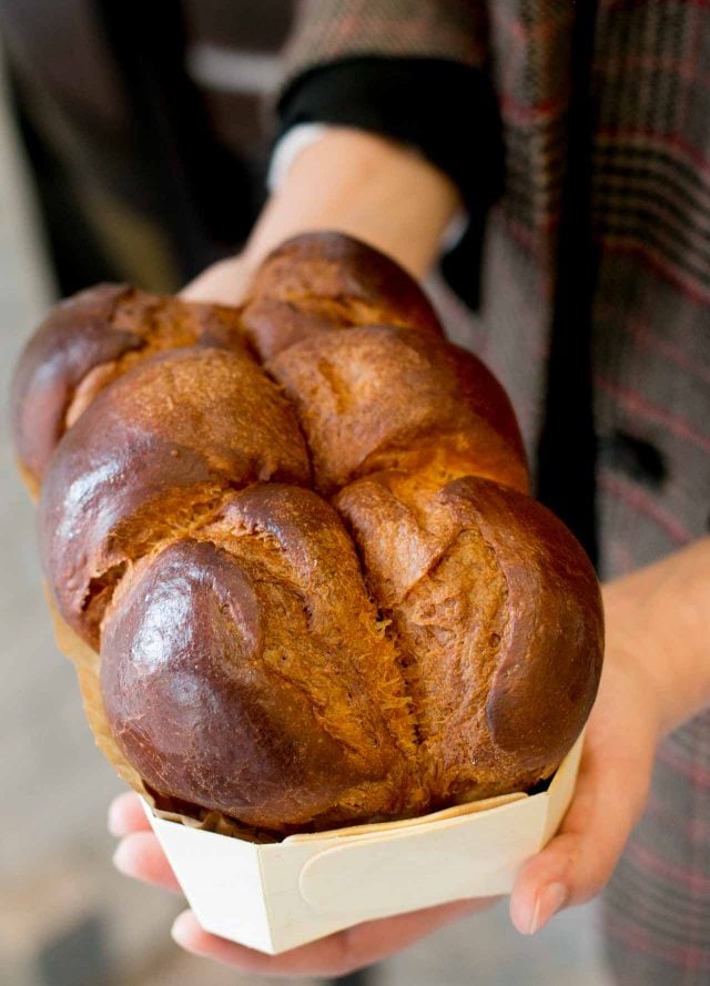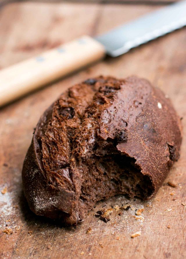 Thankfully carbs have been given a break recently so I donโt feel bad when I pick up, and devour, an entire small-ish loaf of their chocolate bread, a dark, crusty oval with รฉclats of dark, bittersweet chocolate, which isnโt too sweet. Itโs great with an afternoon coffee, but fine on its own, for breakfast.