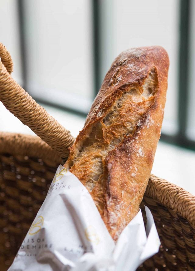 There arenโt any flabby pas trop cuite (undercooked) baguettes at Maison Landemaine either. Each one is perfectly cooked; crisp and well-browned on the outside, chewy, moist, and rip-apart airy inside.