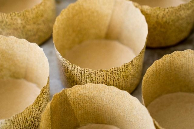 - Preheat the oven to 375ยบF (190ยบC). Set 8 small panettone molds on a rimmed baking sheet.