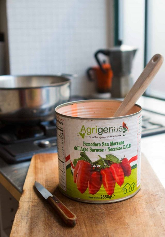 Also making Bolognese gave me a chance to use some of San Marzano tomatoes I bought at Terroirs dโAvenir, where I went to get some produce a week or so ago. (Is anyone else having trouble keeping track of says, and time, these days?) For some reason, they had #10 cans (5 pounds, 10 ounces/2550g) of the deeply-flavored, famous canned tomatoes, and was happy to see them sold in bulk. Most people do their shopping every few days in Paris, and only the hardy would go through that many tomatoes. If I could turn some of those tomatoes into chocolate, Iโd be even happier.