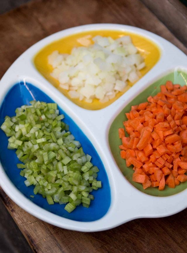 - Melt the butter with the olive oil in a soup pot over medium-high heat. Add the onions and cook, stirring frequently, until the onions are soft and translucent, about 3 minutes. Add the celery and carrots and cook, stirring a few times, until they start to wilt, 3 to 4 minutes.