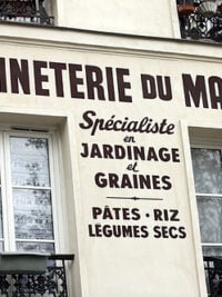 A few storefronts away is Graineterie du Marchรฉ, one of my favorite shops in Paris. Jose is the friendly owner, who took over the shop over a decade ago. There are potsย of fresh herbs outside for windowsill gardeners, and the back of the shop is a small gardening store as well as a little brocante (flea market), with housewares Jose has found. Stock up here on old-fashioned French candies, varietal honeys, excellent nut oils, and dried cassoulet beans.