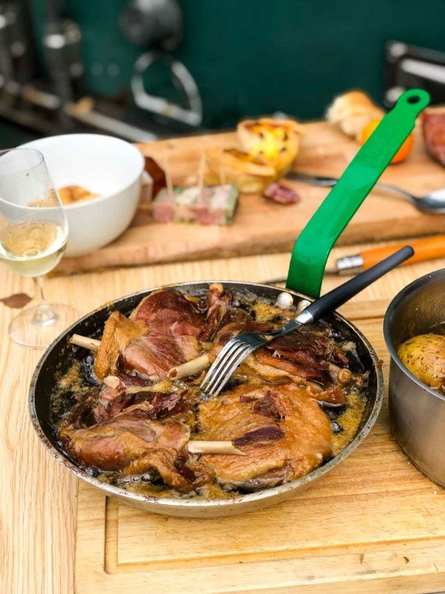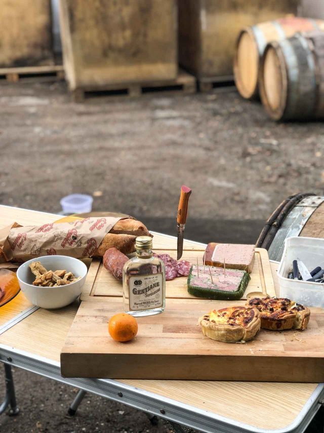As we were out in the middle of nowhere, I didnโt see any stoves or ovens around, but I think he cooked this delectably crisp duck confit on one of the alembic stills. It really hit the spot, along with glasses of local white. Another thing thatโs a pleasure about getting out of town is that people in Burgundy enjoy white wine (most people in Paris favor heavier reds) and Iโve become more of a white wine person. A glass of brisk Chablis with duck confit, or a vin du Jura with a slice of Comtรฉ or creamy Mont dโor? Yes!
