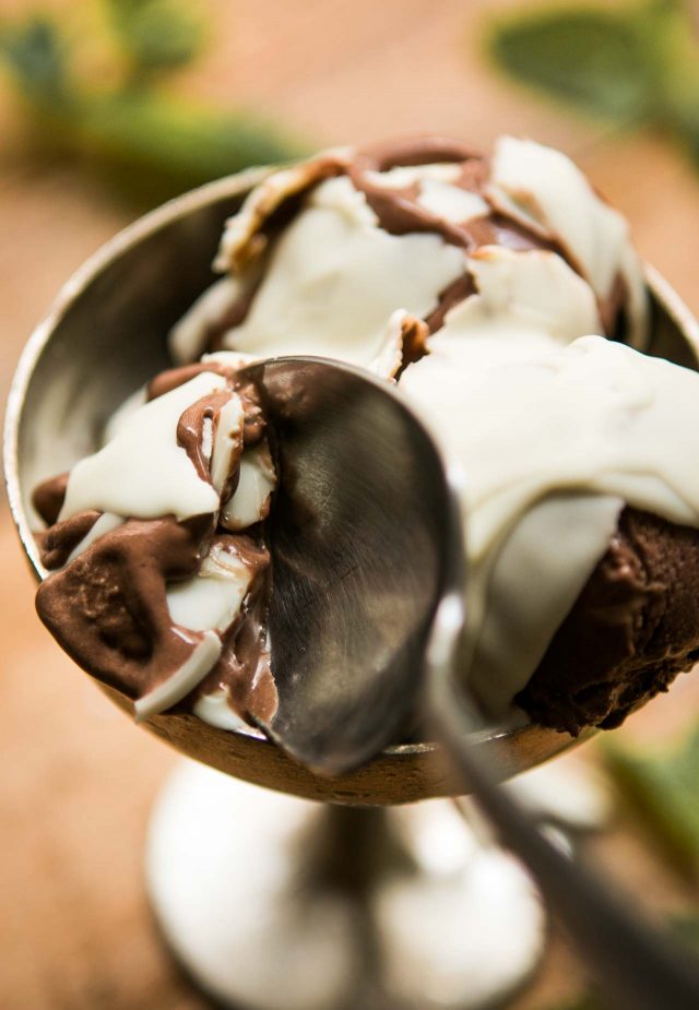Donโt worry if yourย scoops donโt look perfect once youโve doused them with sauce. Iโm not a food stylist โ Iโd probably get fired if I was, because I canโt resist snacking on anything within armโs reach โ and any attitude you get over the way it looks will quickly melt into minty, chocolateyย bliss, as soon as people start spooning it up.