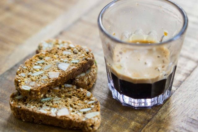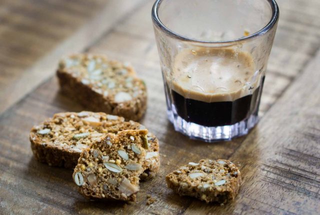 The final biscotti came out really well, which was a relief because I now have a few hundred biscotti on hand, so am keeping the coffee pot at the ready. Sweet wine, like vin santo, marsala and sherry are also quite handy served alongside, to dip the crisp cookie in. With so many biscotti around, I guess Iโd better keep some wine handy, too. (Which is never a bad idea.)