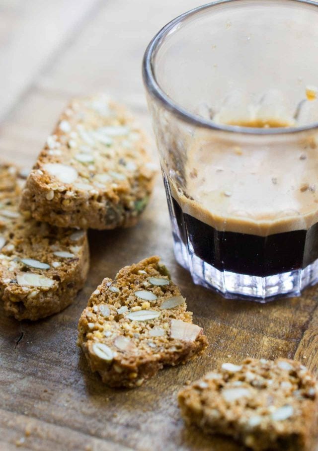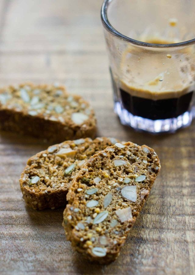 Long story short, after baking them off, the biscotti didnโt quite fit the flavor profile and texture that I was hoping for. I wanted the grains and seeds to come to the forefront, and I wanted the cookies to be very crisp, but not heavy and dense.