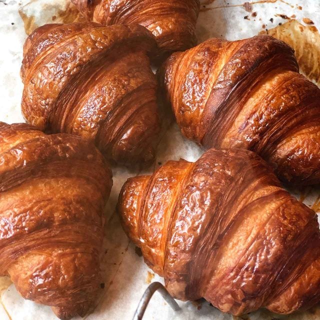 Supermoon Bakehouse is my happy place in New York City, a whimsical pastry wonderland with boldly-flavored croissants. They werenโt baking the โEverythingโ croissants the day I was there, which are filled with cream cheese, smoked salmon and dill, topped with a multitude of seeds, but there were Reuben croissants rolled up with pastrami, housemade mustard, sauerkraut and topped with a cornichon. Youโve got to hand it to Ry Stephen, the owner and baker; no one can dial up a croissant like he can, especially his chocolate ones (above) filled with dark chocolate pastry cream and cocoa-laminated dough. But even if youโre not interested in fillings or frostings, his standard croissant laminated with French beurre dโIsigny, is one of the best croissants youโll have anywhere. I had a scoop of his sweet corn ice cream with freeze-dried corn, which was amazing. Rumor has it the soft serve croissant butter ice cream is also a winner. (120 Rivington Street.)