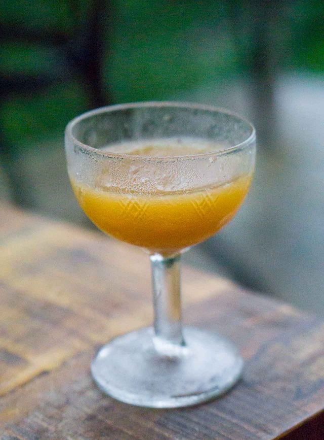 But when I got the book, I found that the concept of The One-Bottle Cocktail is that you shouldnโt need to run around and invest in a bunch of bottles of liquor to make a cocktail, such as those that call for a 1/4 ounce of, say, absinthe, or a half-teaspoon of crรจme de violette.