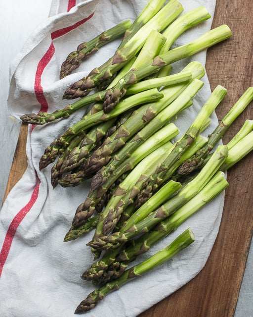 - 1 1/2 pounds (680g) green asparagus, washed and towel-dried (see above)