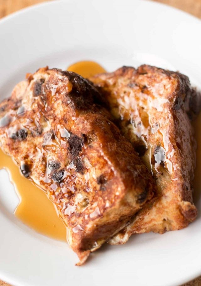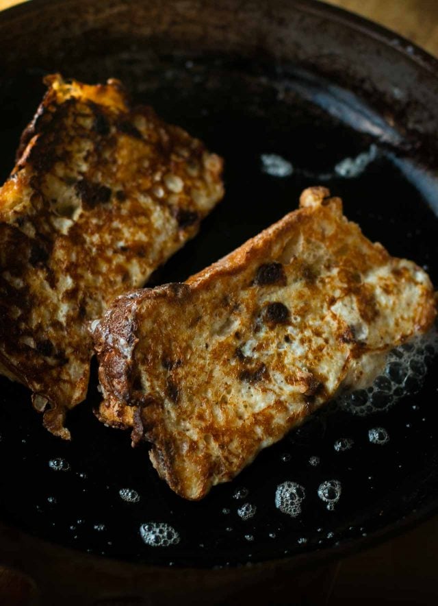 - Heat a good-sized pat of butter in a large skillet over medium heat. Add the custard-soaked slices of bread to the pan and cook until they're browned on the bottom, about a minute. Turn the slices of bread over and fry on the other side until browned on the bottom.