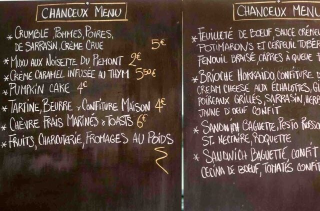 I didnโt indulge at lunch, but Chanceux does have a well-edited selection of natural wines, which is another checkbox of the younger generation of cooks and wine bar proprietors in France. Natural wines can be divisive but when I have a good one, I really like discovering the unique identity of the wine, which is more easily discernable when the wine hasnโt been over-manipulated nor is it filled with additives. When Alice Fiering told me about all the additives that can be added to wine, and Pierre Jancou published a list of them in the EU, I began to choose wine a little more carefully.