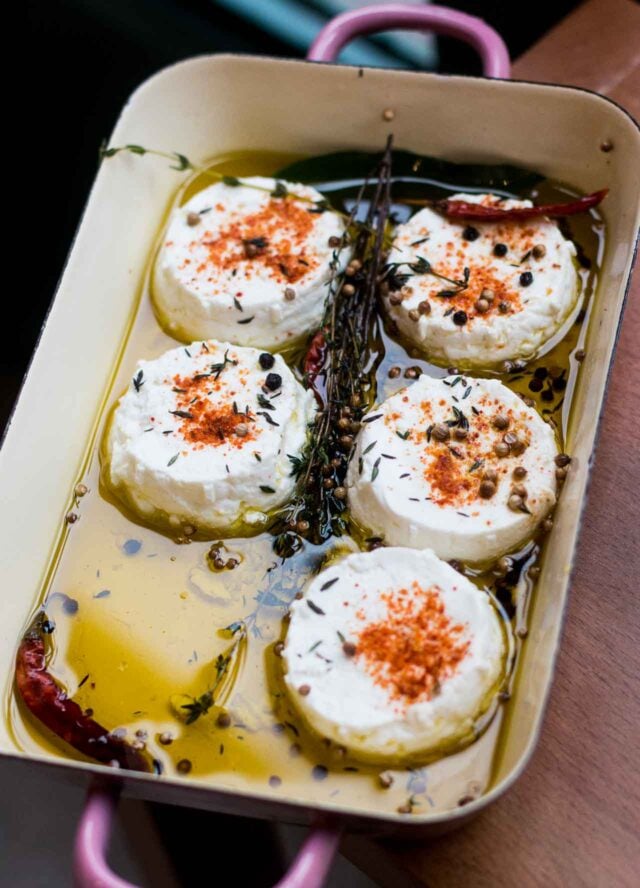 If that name looks familiar, itโs because that chรจvre is made by Thomasโ father Bernard, who is a farmer and makes his own goat cheese, a specialty of the region where he lives, which is available in different stages of ripeness from very fresh (soft and dewy) to disks that are sharper and more aged.