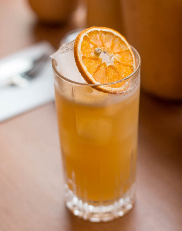 Right now they are open from 10am to 7pm, but that may change in the future. Lunch was busy when I went and is served from Noon to 3pm. To start off, Thomas made me an incredible mocktail, as he described it. (Another thing thatโs changed in France is that people donโt habitually drink wine with lunch as they have to get back to work.) He pulled out a citrus press and began squeezing Satsuma tangerines and limes, then adding apple/quince juice as well as fait maison Makrut lime syrup to the glass. It was beautiful to behold, and so good that I finished it quickly.