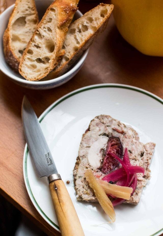 Even though Farah has sent me a slice of rabbit-fig terrine with pickled rhubarb and onions (shown at the top of the post) to taste, which was terrific, I wasnโt prepared for the copious โBriocheโ that landed in front of me.