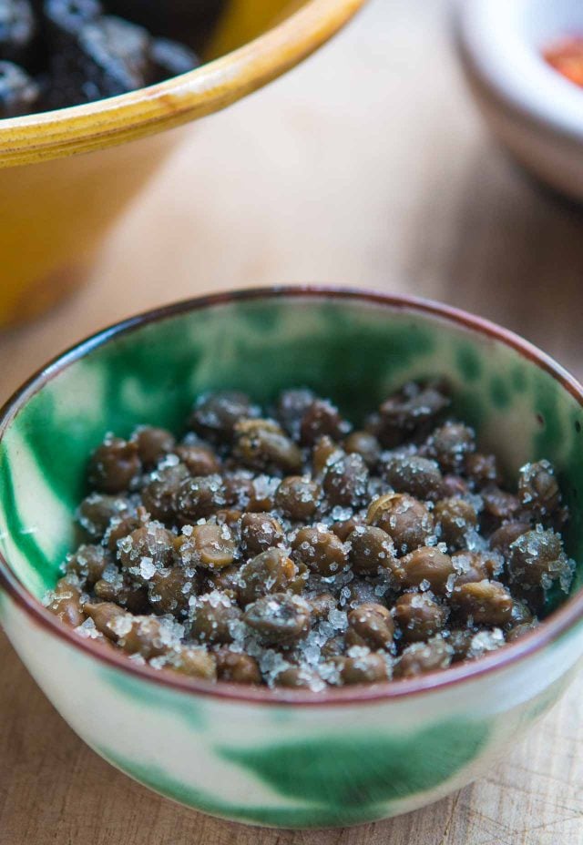 One of my favorite pastas is Pasta Puttanesca. For some reason, I donโt make it very often, because I always seem to be sautรฉing fresh greens in olive oil and garlic, or something like that, to toss with noodles. But I love all the ingredients in Pasta Puttanesca; capers, olives, anchovies, crushed red peppers, and lots of garlic, so when faced with what to make for dinner the other night, when I didnโt have any vegetables from the market, it became โwhatโs for dinner.โ