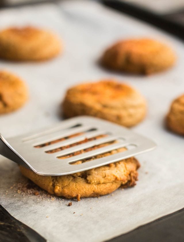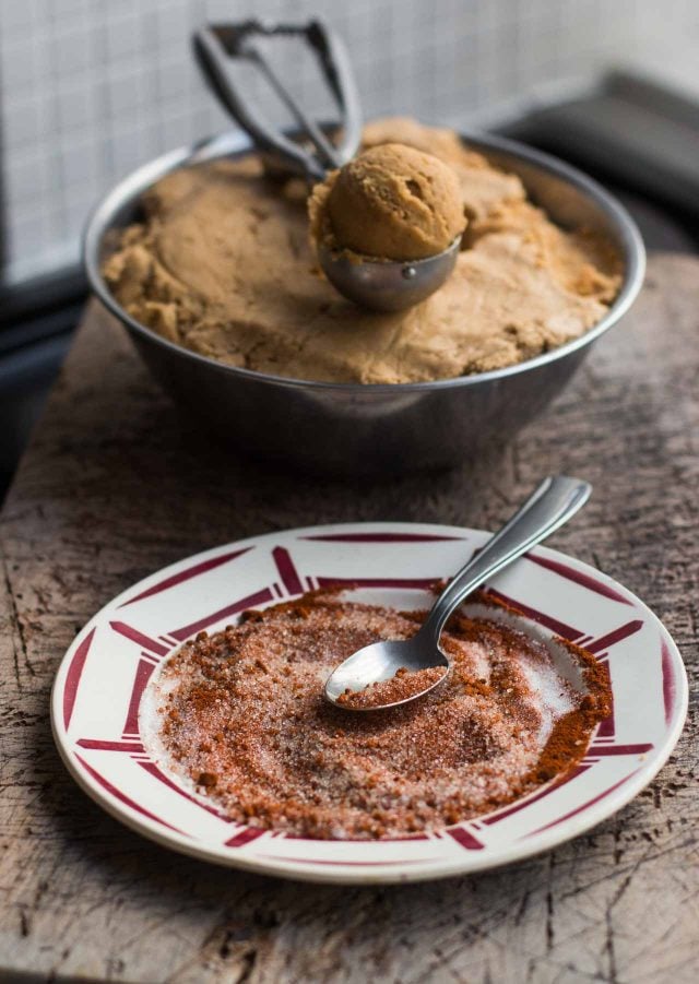 The recipe was simple to put together and had a touch of whole wheat flour, to make them extra hearty. I used some teff instead, which I had on hand, which made them a bit crumblier. But the co-star of the show here in smoked paprika both in the dough and on the outside, in the sugary crust. The smoky flavor is a nice contrast to the rich peanut butter, with a touch of salt that bridges the savory and the sweet.