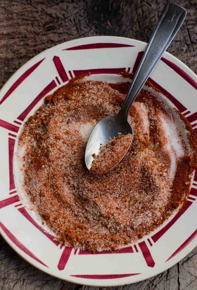 - In a small bowl, mix together the turbinado and granulated sugar, paprika, and flaky sea salt.