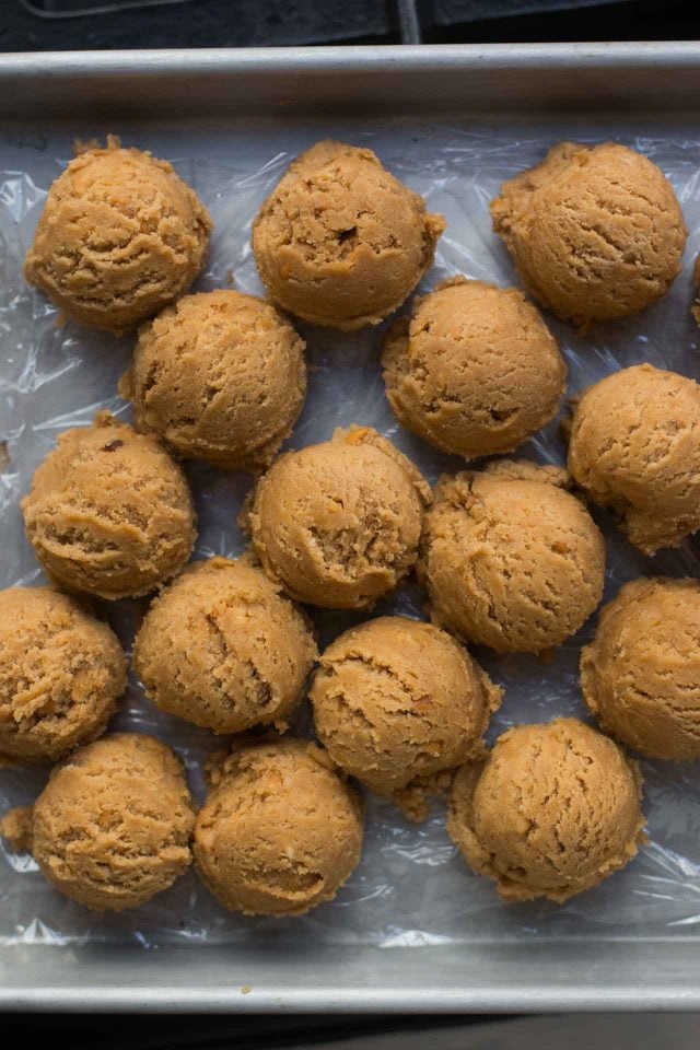 - Scrape the dough into a shallow bowl, cover, and refrigerate for at least 24 hours, or up to 3 days. (The dough can be frozen at this point for up to three months, although I recommend doing it after scooping it in balls, in step #7. Let thaw before baking.)
