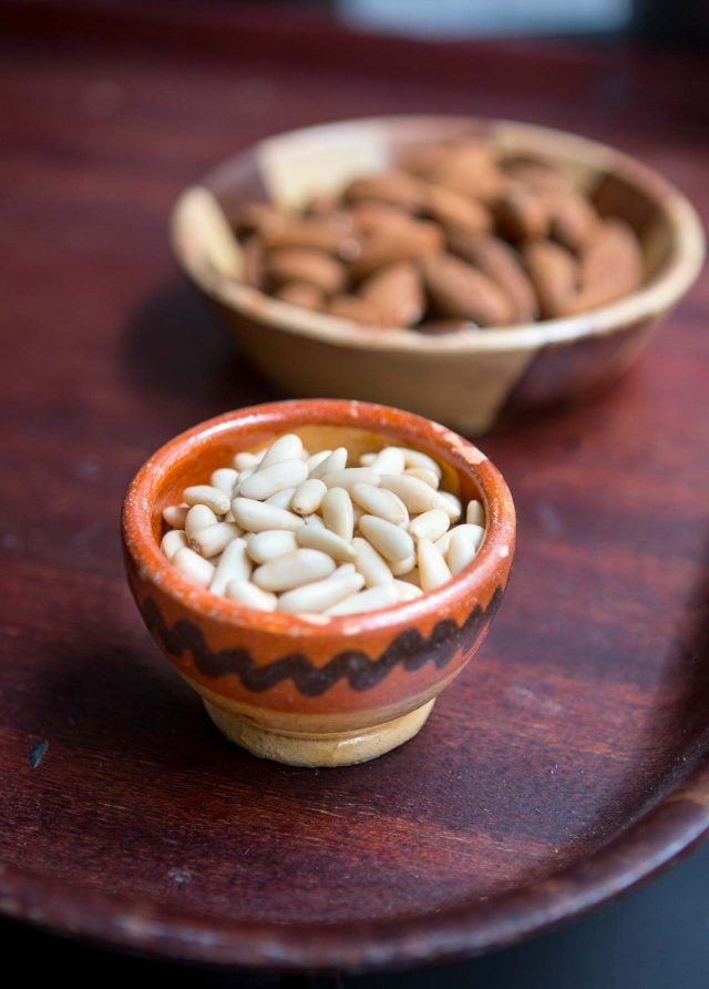 - 1/3 cup (30g) whole almonds, unroasted, coarsely chopped, or 3 tablespoons untoasted pine nuts (30g)