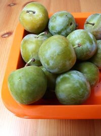 - 12 ounces (350g) plums, pitted and thickly sliced