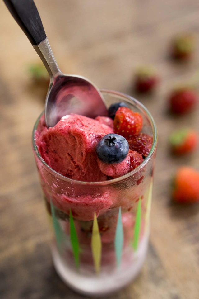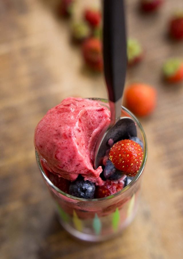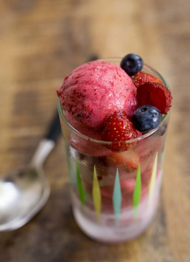 Nope, although the steady churning of a machine gives the sorbet a nice consistency. (For tips on ice cream machines, check this post.) If you want to make this without using an ice cream machine, freeze the sorbet mixture in a shallow, freezer-safe container; one thatโs plastic will make it easier to remove the sorbet mixture in chunks when itโs frozen. Once frozen, break the sorbet mixture into rough chunks, place them in a food processor, and pulse the mixture until itโs smooth.
