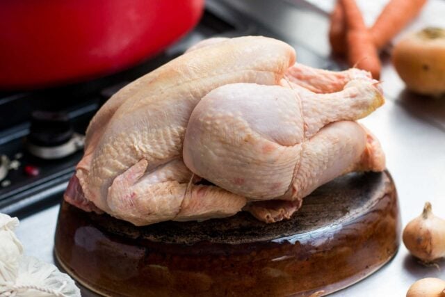 Traditionally, Poule au pot was made with a poule, a stewing hen. Interestingly, if you go to the Nouvelle Aquitaine website, the region where Poule au pot is said to originate, the French language version of their Poule au pot recipe calls for a poule whereas when you toggle the recipe into English, it calls for chicken. Their recipe also specifies (or non-specifies) a nebulous cooking time in the preparation steps, but just under the recipe title it says the recipe takes โ2 1/2 hoursโ to cook, which sounds about right for a stewing hen, but a long time for a chicken. The Nouvelle Aquitaine website also calls for rice, mushrooms, and โwhite sauce.โ But the photo accompanying the recipe shows no rice, mushrooms, or white sauce.