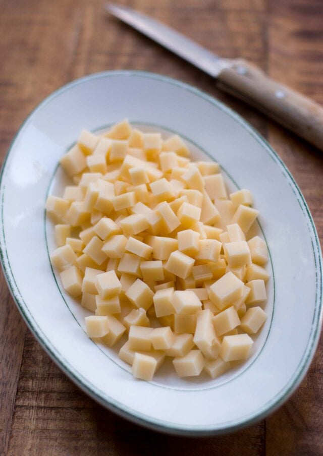 - 3/4 cup (130g) finely cubed (or coarsely grated) Swiss-style cheese, such as Emmenthal, Comtรฉ, Gruyรจre (or cheddar)