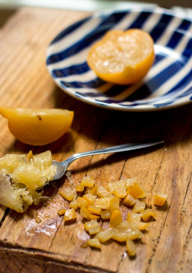 - 1 preserved lemon peel, diced (insides scooped out and discarded)