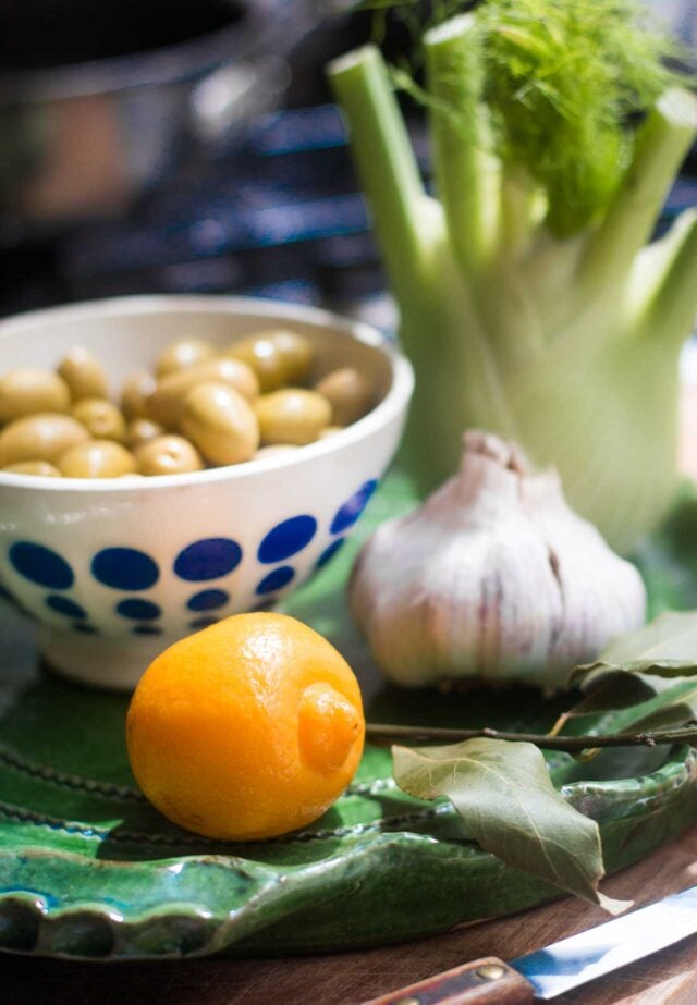 Rabbit Pasta with Green Olives, Fennel, and Preserved Lemons