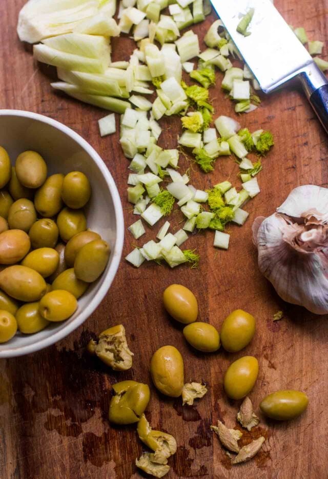 - 30 green olives, pitted and chopped (1 cup, 115g pitted weight)